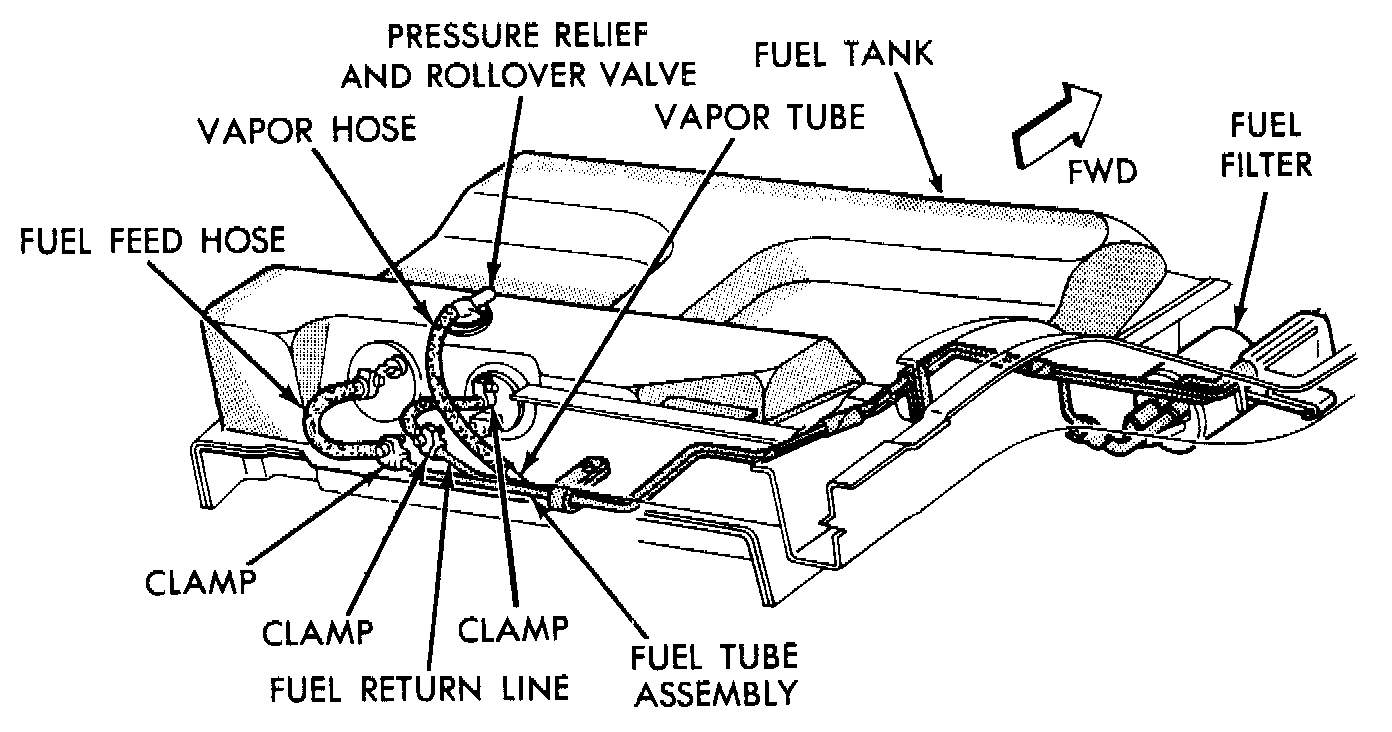 On vehicles equipped with a return line from the fuel pump to the fuel tank, a one-way check valve is used to provide the required protection. In addition to the valve, improved flow control is used in the fuel pump to control flow when the pump is subjected to the higher than normal pressure which can occur during rollover. A fuel filler cap with a higher pressure setting is used for the same reason on vehicles with side fill.