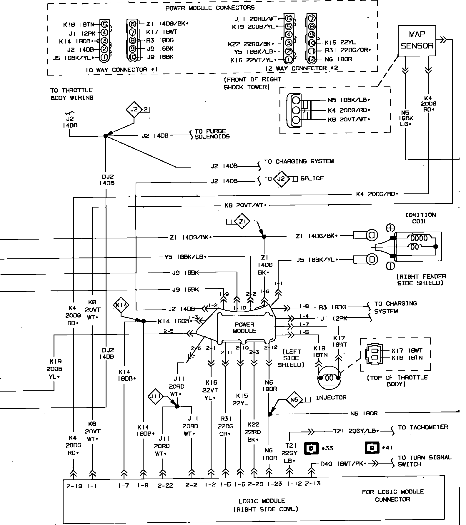 Ignition System Wiring Circuit (Part 3 of 4). Less Turbo: