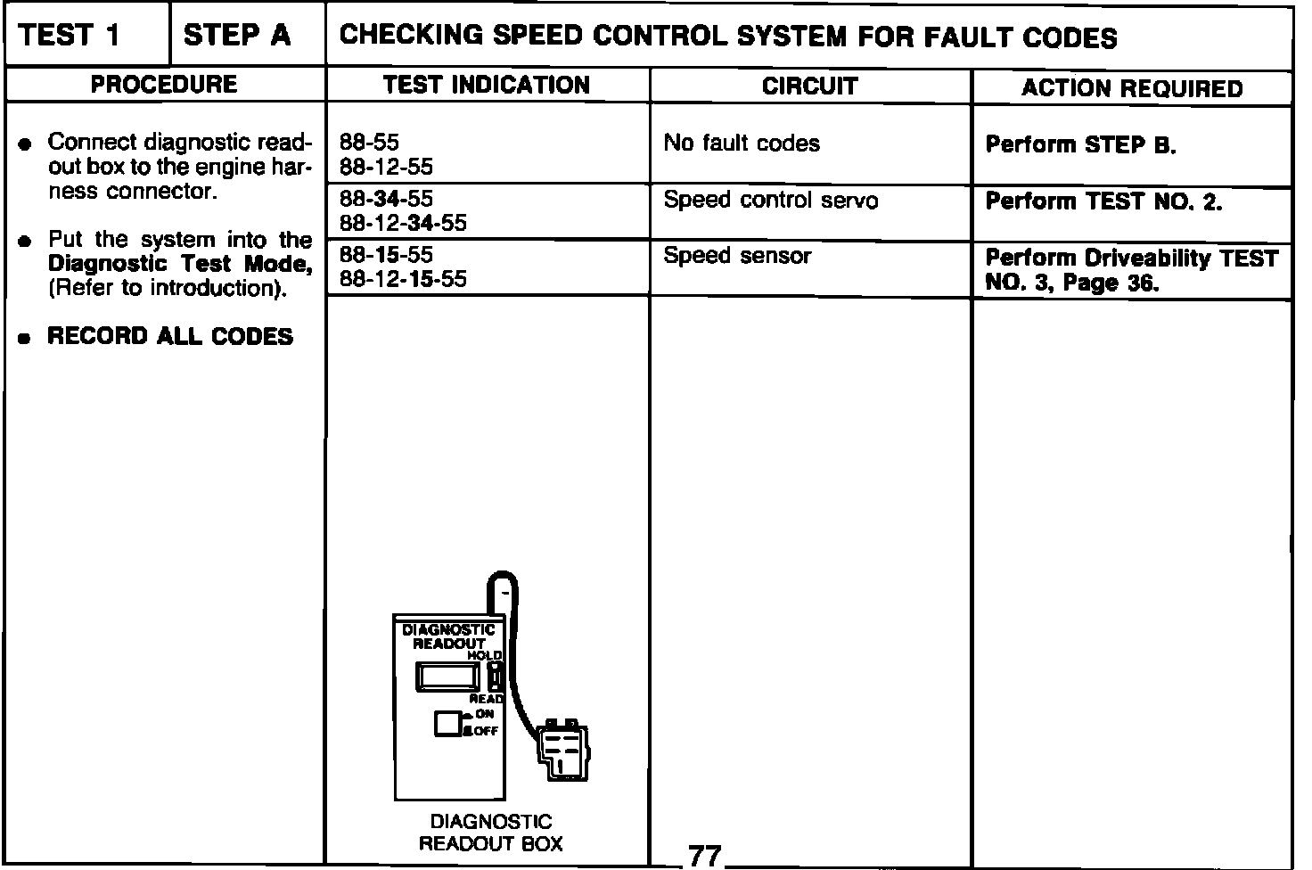 TEST 1 - STEP A - CHECKING SPEED CONTROL SYSTEM FOR FAULT CODES