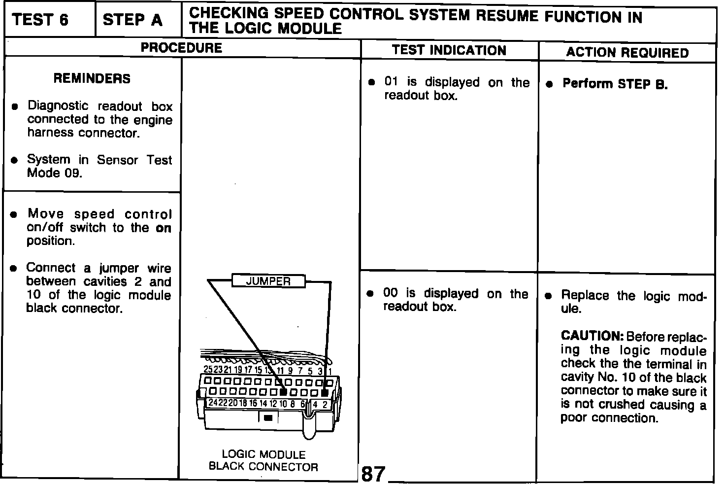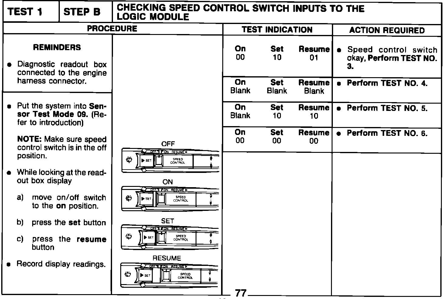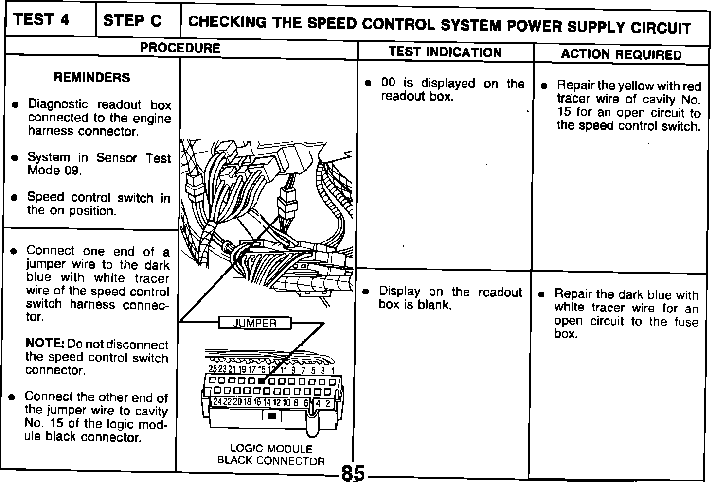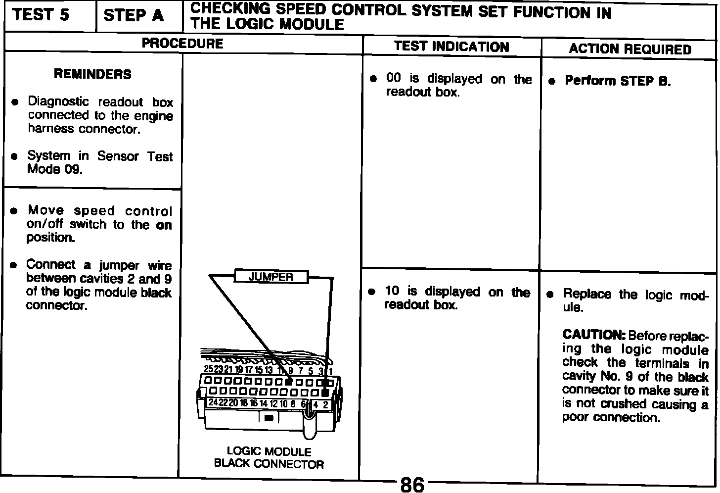 TEST 1 - STEP B - CHECKING SPEED CONTROL SWITCH INPUTS TO THE LOGIC MODULE