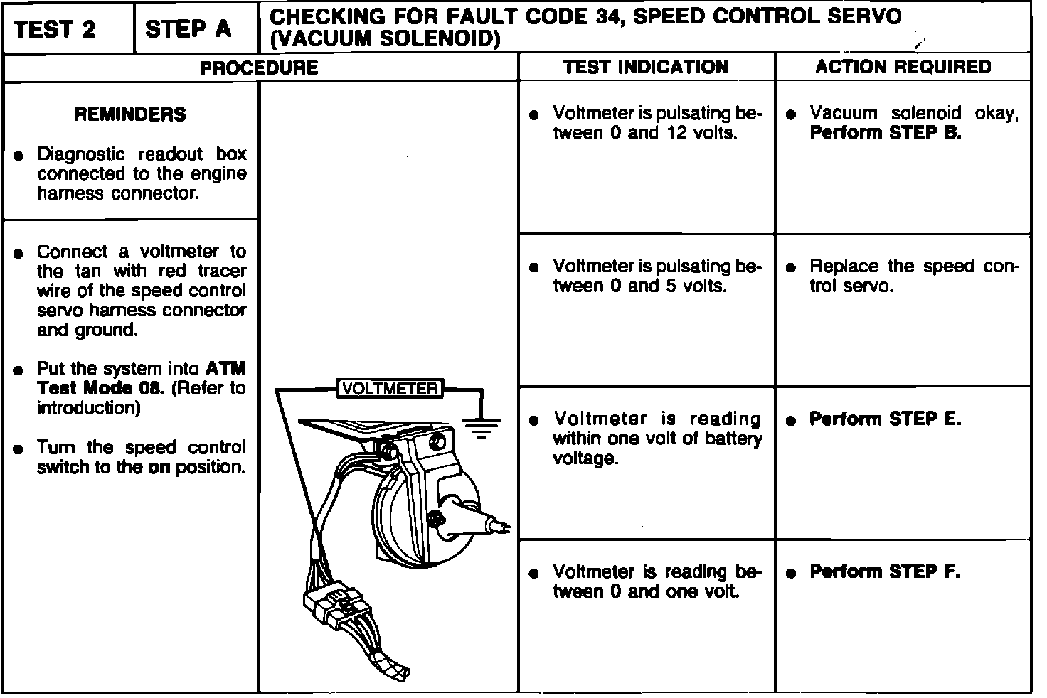 TEST 2 STEP A CHECKING FOR FAULT CODE 34, SPEED CODE SERVO