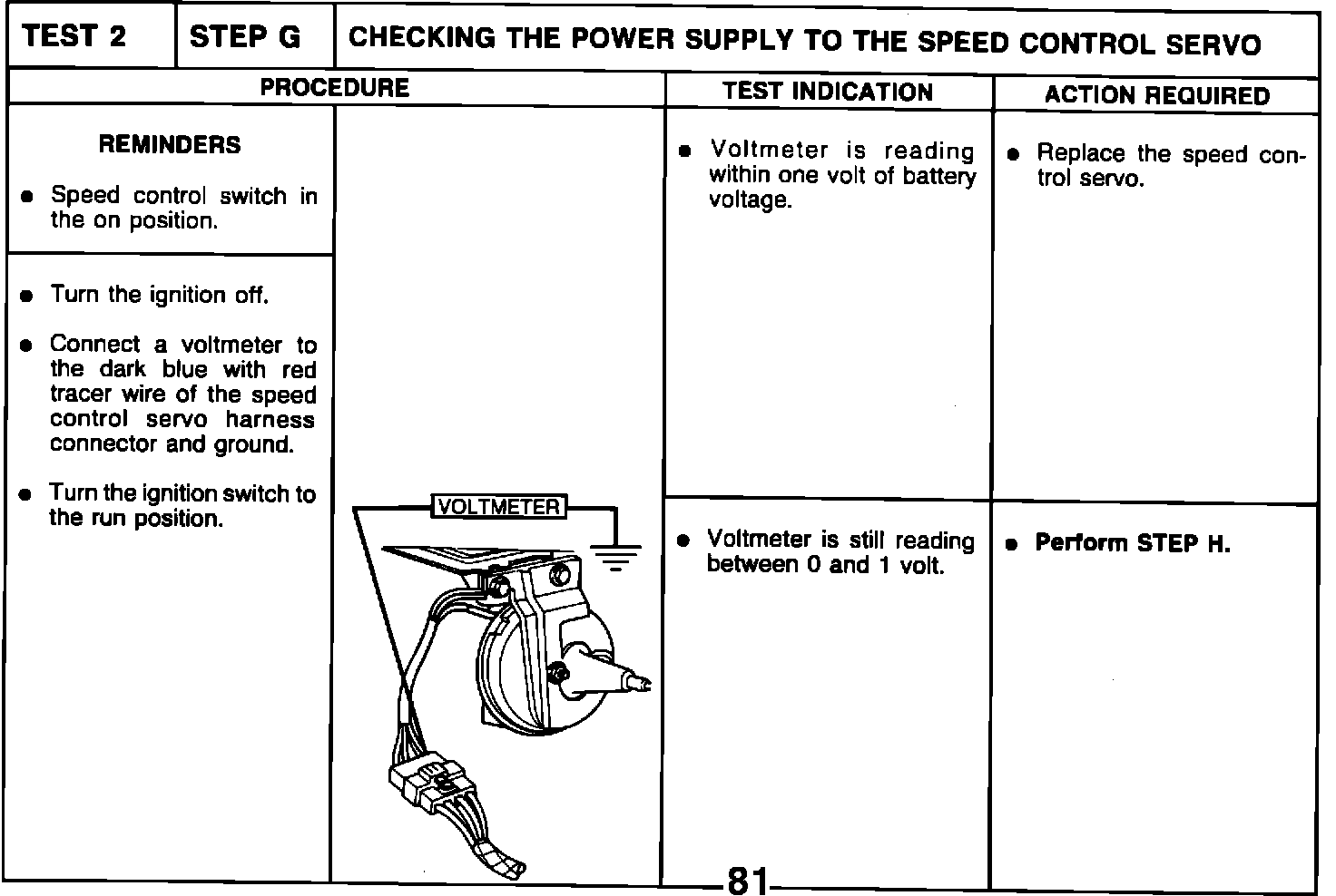 TEST 2 - STEP G - CHECKING THE POWER SUPPLY TO THE SPEED CONTROL SERVO