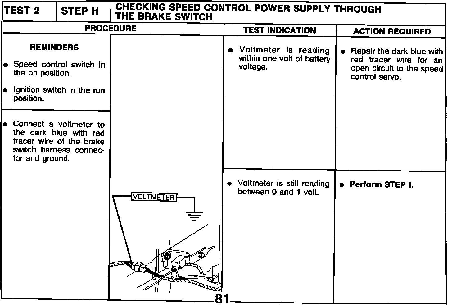 TEST 2 STEP H CHECKING SPEED CONTROL POWER SUPPLY THROUGH
