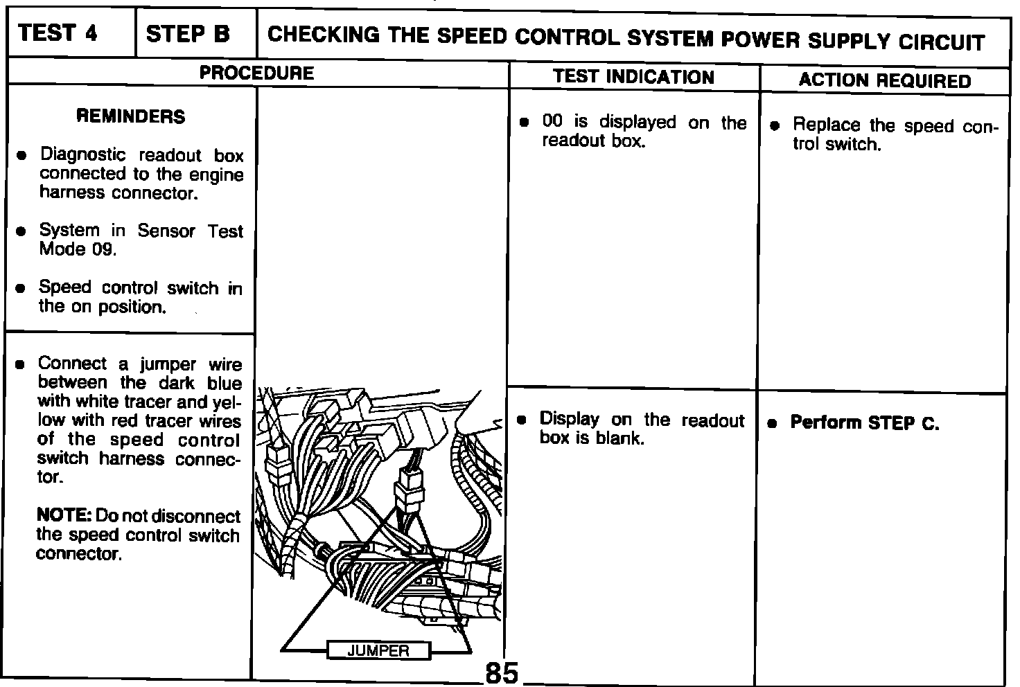 TEST 4 STEP A CHECKING SPEED CONTROL SYSTEM ON/OFF FUNCTION IN