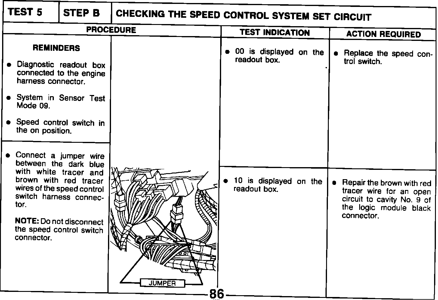 TEST 5 STEP B CHECKING THE SPEED CONTROL SYSTEM SET CIRCUIT