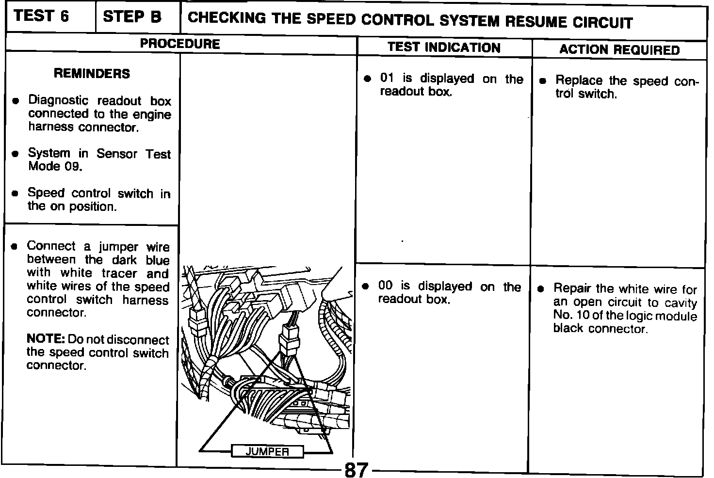 TEST 6 STEP B CHECKING THE SPEED CONTROL SYSTEM RESUME CIRCUIT