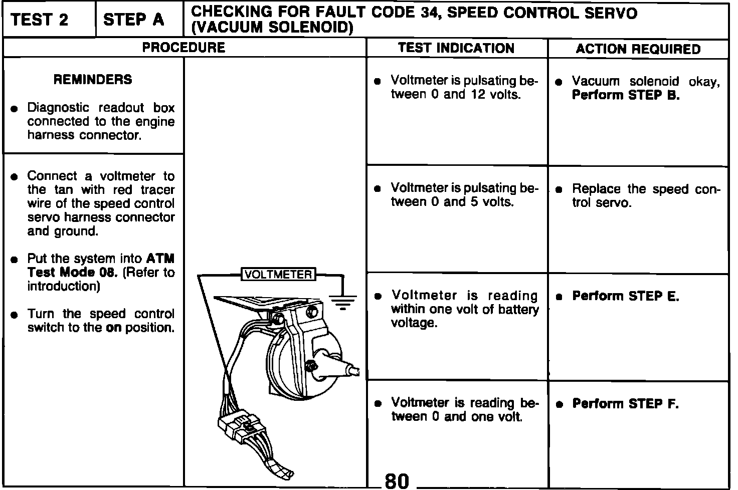 TEST 2 - STEP A - CHECKING FOR FAULT CODE 34, SPEED CONTROL SERVO