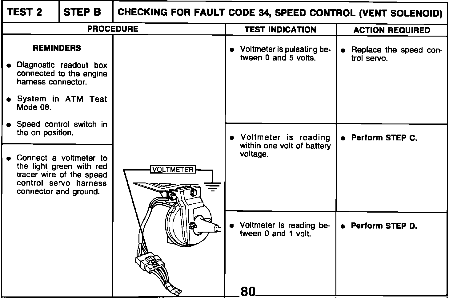 TEST 2 - STEP B - CHECKING FOR FAULT CODE 34, SPEED CONTROL (VENT SOLENOID)