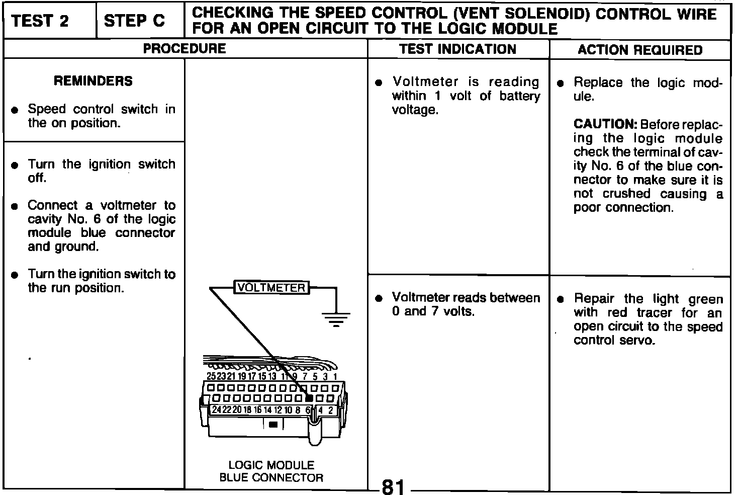 TEST 1 - STEP B - CHECKING SPEED CONTROL SWITCH INPUTS TO THE LOGIC MODULE