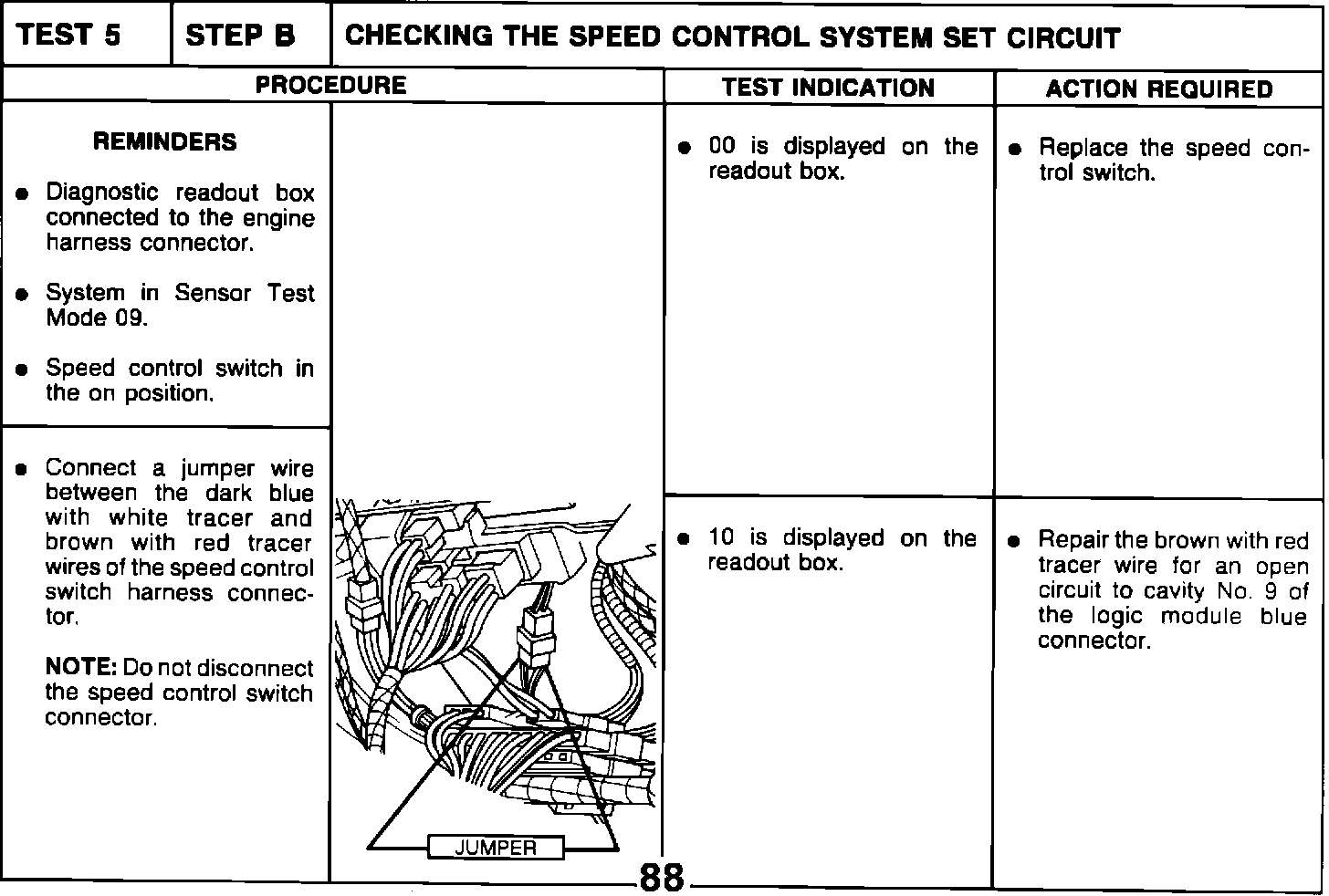 TEST 5 STEP B CHECKING THE SPEED CONTROL SYSTEM SET CIRCUIT