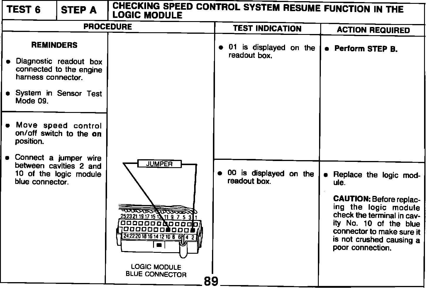 TEST 6 STEP B CHECKING THE SPEED CONTROL SYSTEM RESUME CIRCUIT