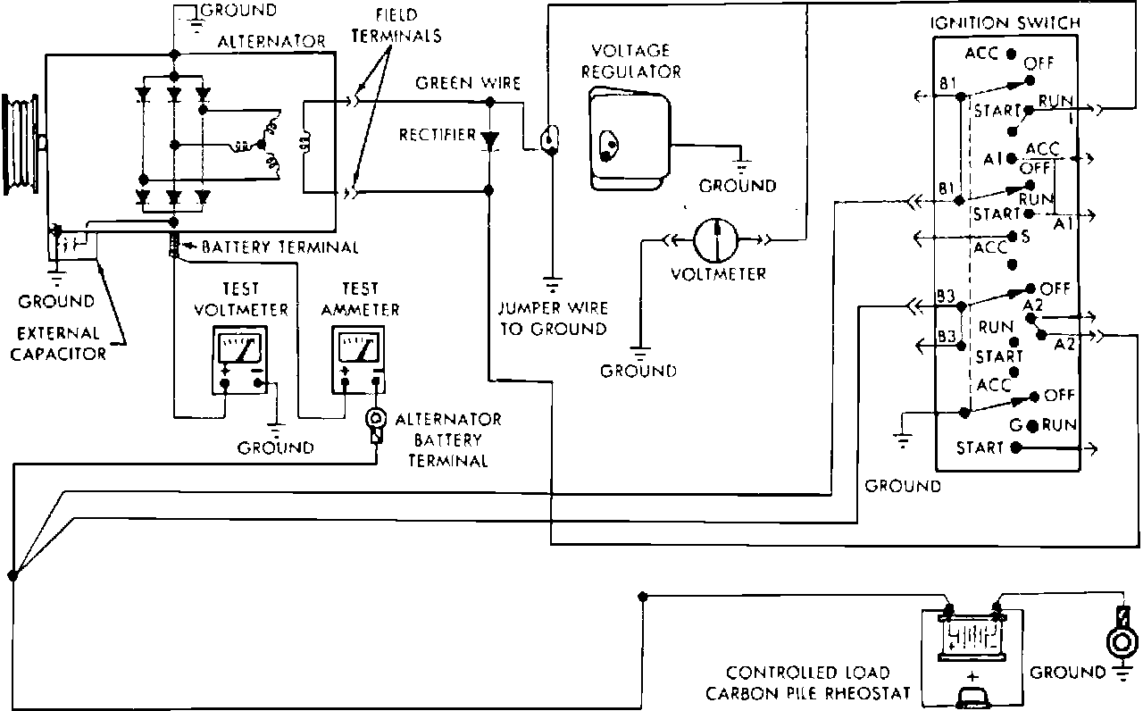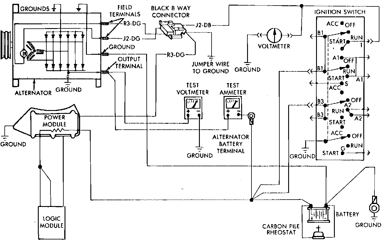 8. If ammeter reading is not approximately 87 amps, proceed to "Bench Tests."