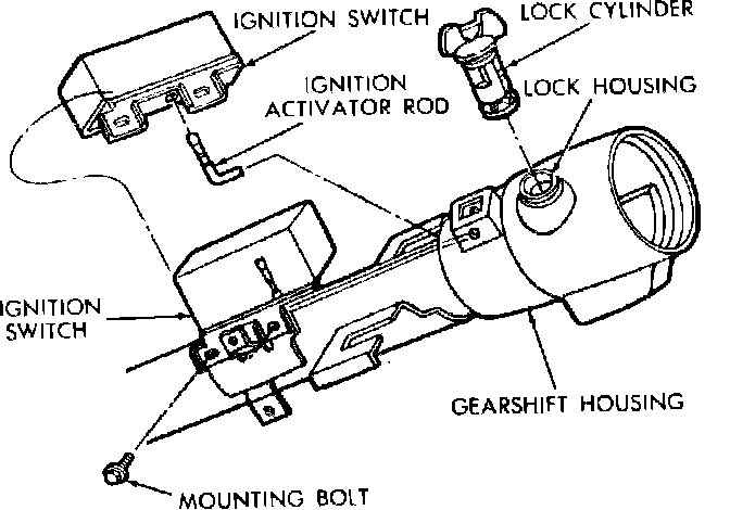 Fig. 4 Ignition switch replacement. Exc. Horizon, Omni, Charger & Turismo: