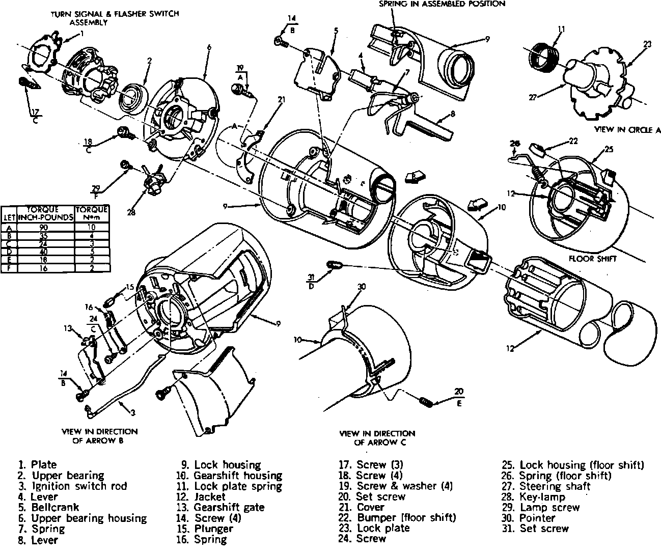 9. Remove lock plate spring and lock plate from shaft and remove shaft through lower end of column.