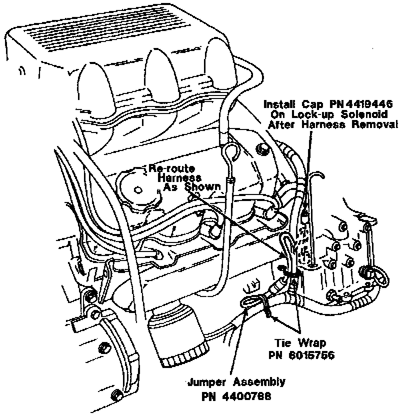In many cases, however, a shudder sensation will be caused by engine related problems. Because of this, Chrysler has authorized the disabling of the torque converter clutch. There is a kit available from Chrysler to eliminate the converter clutch operation (PN 4419447). The kit consists of a wire harness assembly, solenoid cap, two (2) tie wraps and an authorized modification label (each part can be ordered separately as well).