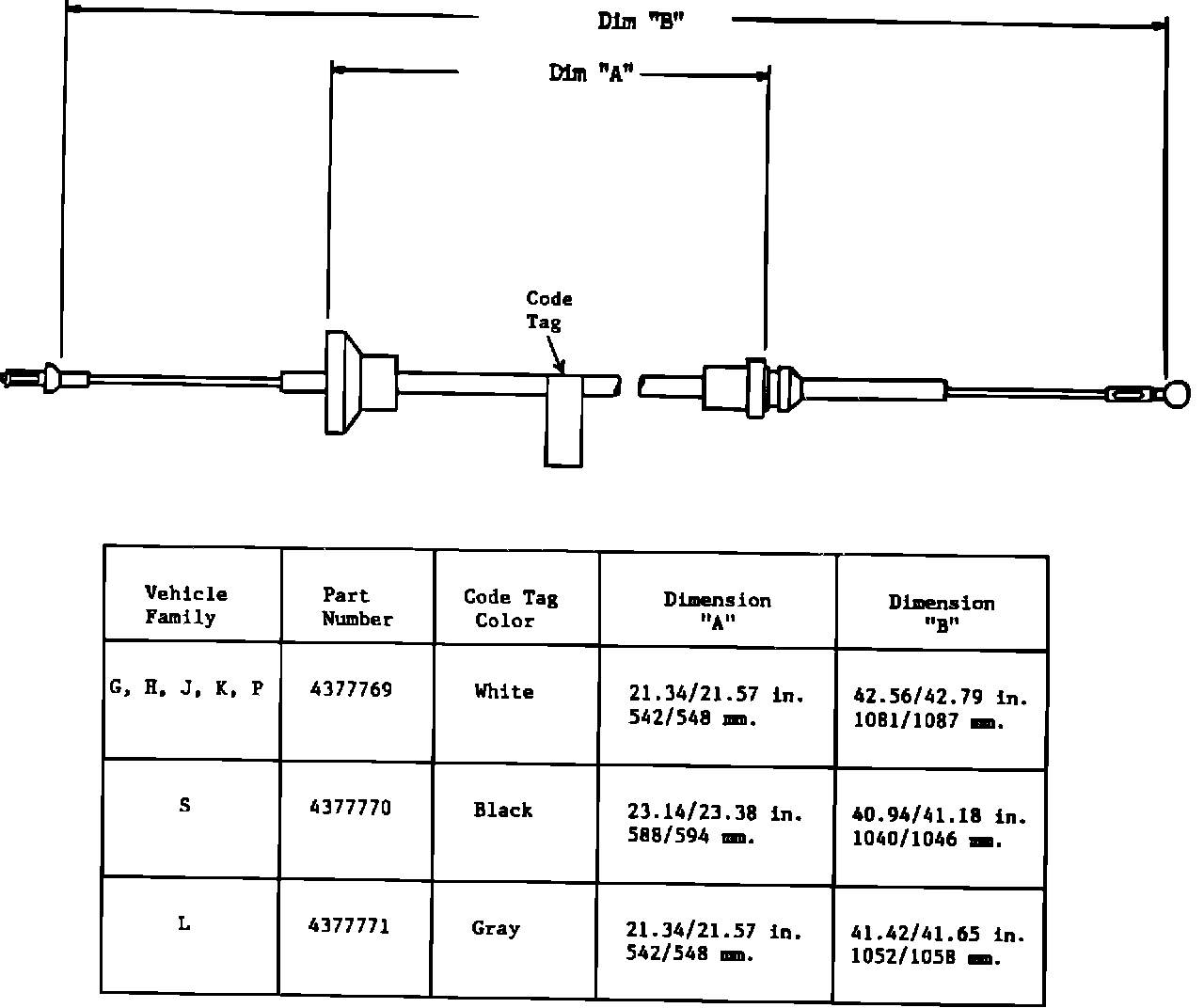 1 Clutch Cable, "G, H, J, K and P" Bodies PN 4377769