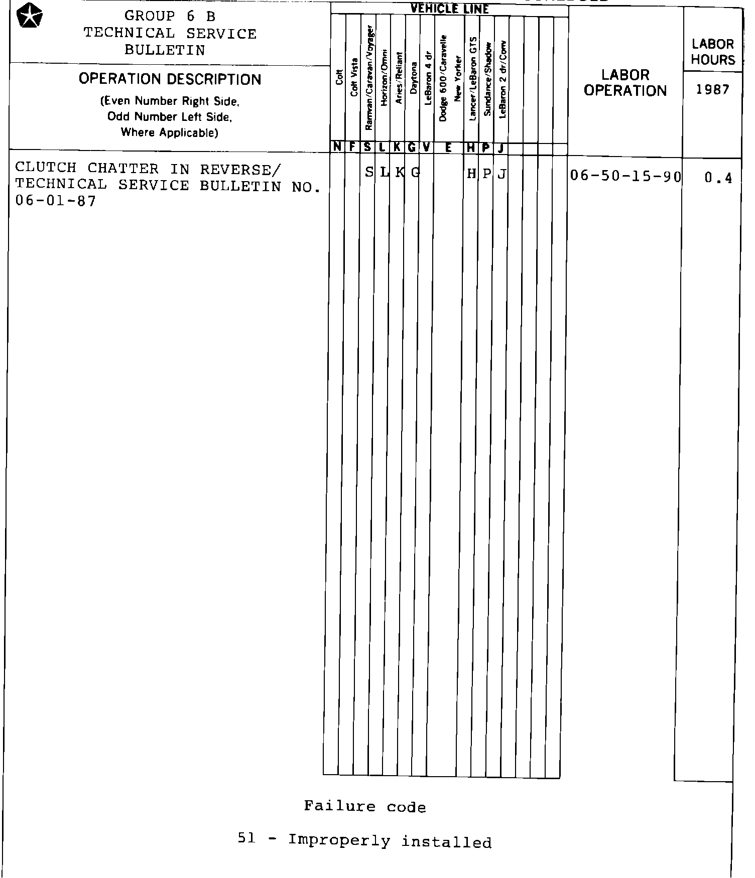 Labor Operation No. 06-50-15-90 . . . . . . . . . . . . 0.4 Hrs.