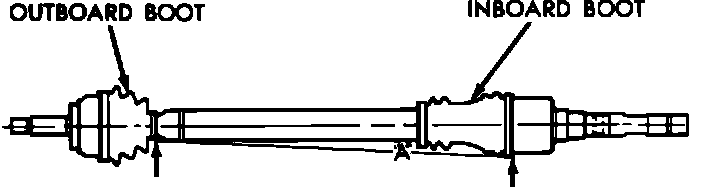 2. Use a tape measure or other suitable measuring device. Measure the direct distance from the inner edge of the outboard boot to the inner edge of the inboard boot on both driveshafts. This measurement must be taken at the bottom (six o'clock position) of the driveshafts, refer to image above.