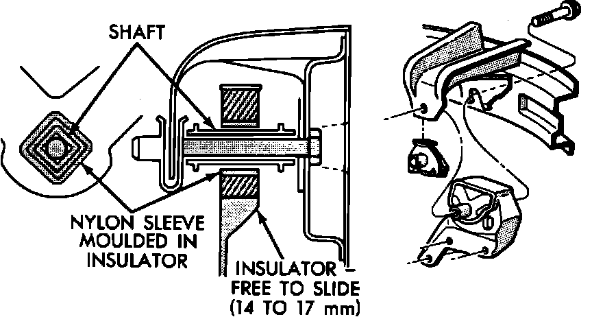 c. Pry engine to right or left as necessary to bring driveshaft length within specifications. Ensure left engine mount is sleeved over long support bolt and shaft, to provide lateral adjustment whether or not engine weight is removed.