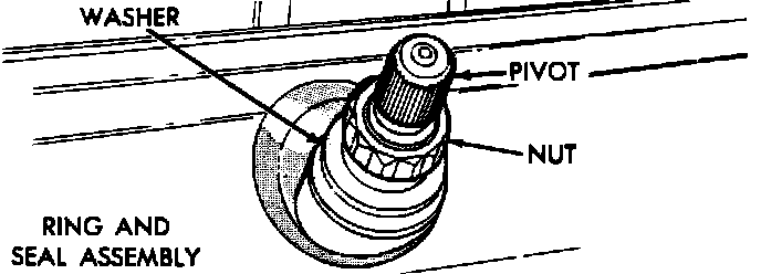 4. Remove nut, ring and seal assembly from pivot shaft.