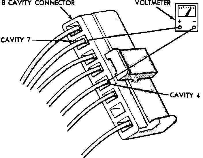 Intermittent wipe and standard two-speed motors are identical. Refer to TWO SPEED WIPER SYSTEM in this section for diagnosis of system problems not involving the delay function.Voltmeter Between Cavities 4 And 7: