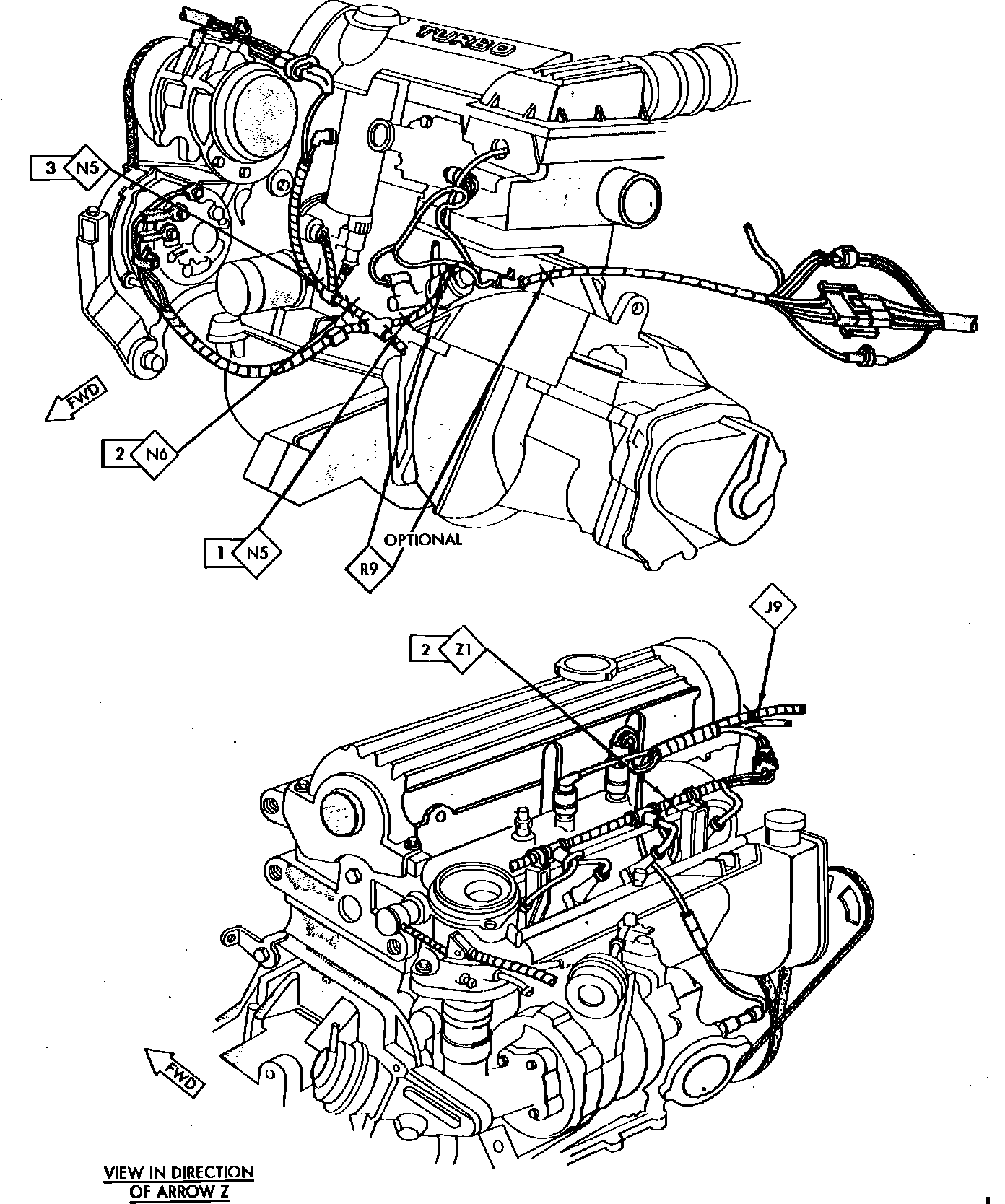 Fig. 46 Splice Locations. Engine W/Turbocharger:
