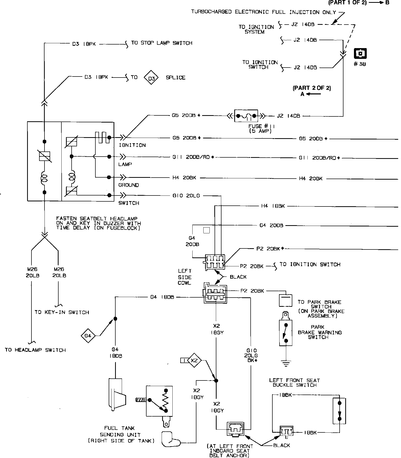 Fig. 13 Brake Switch, Fuel Gauge, Seatbelt Warning System & Tachometer System Wiring Circuit -- Part 2: