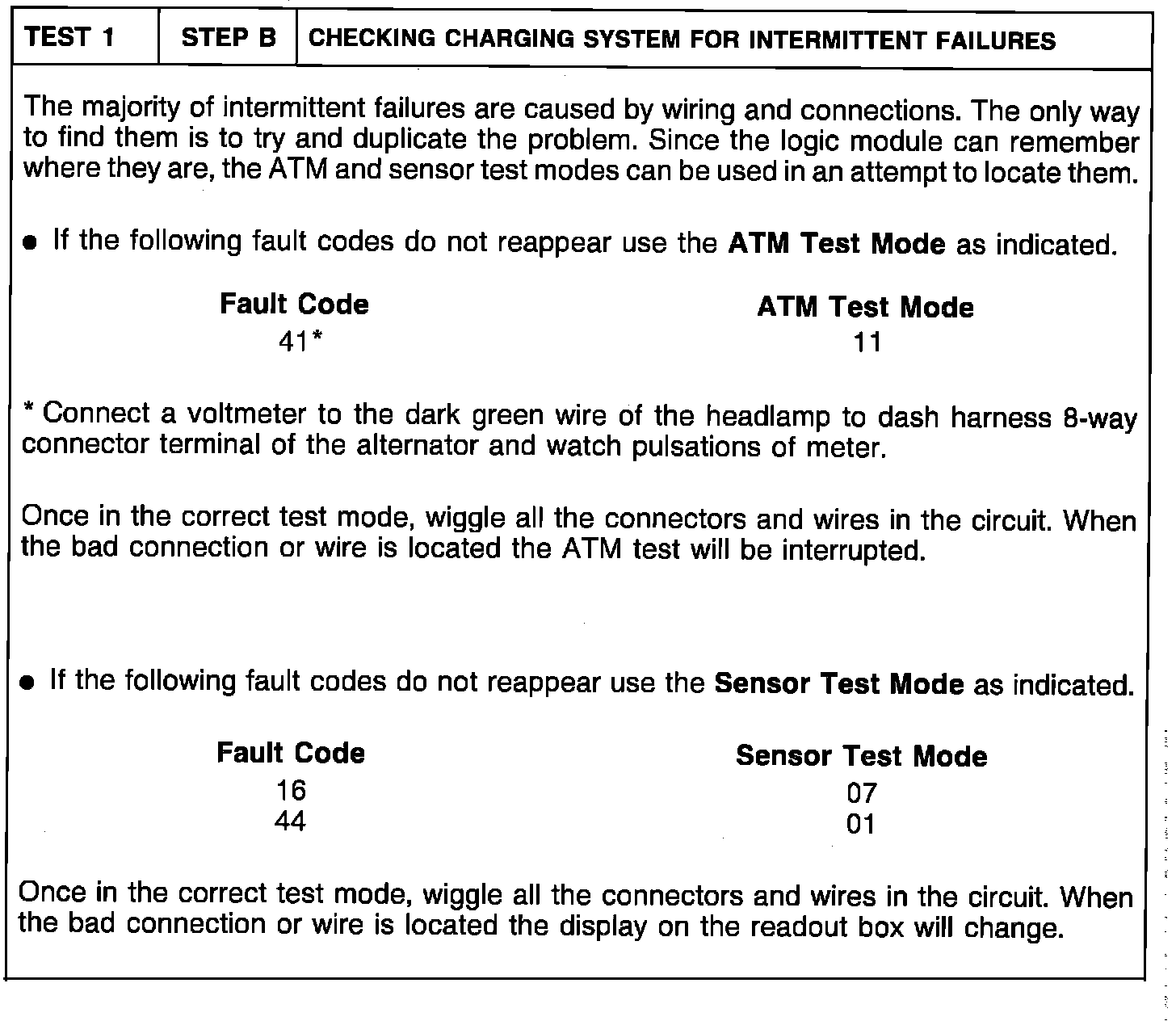 Test 1-Step B, Check Charging System For Intermittent Failures: