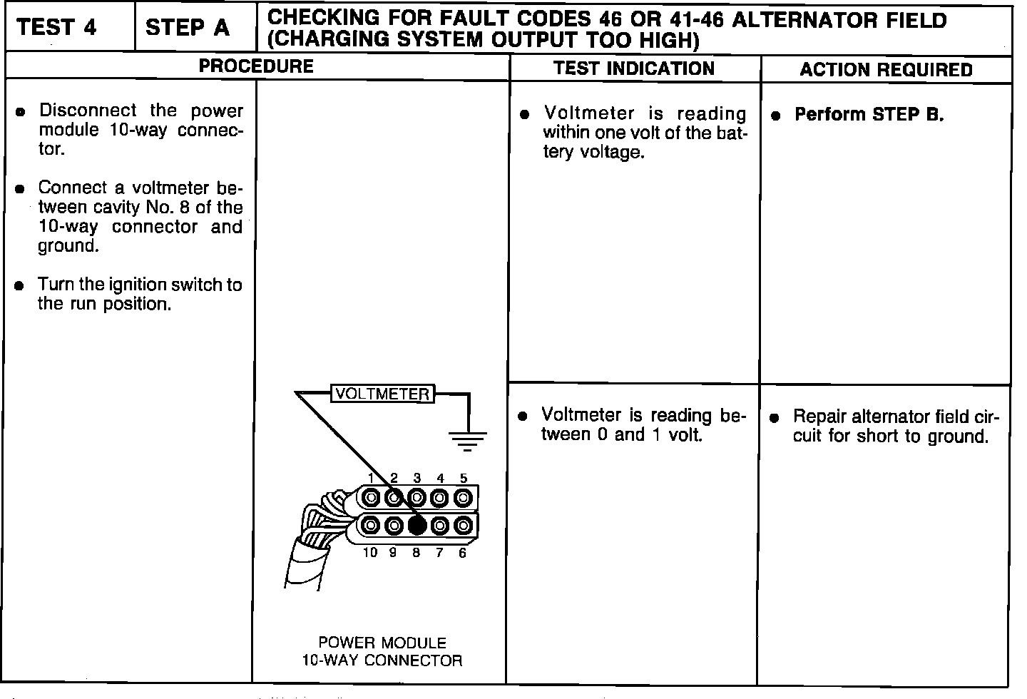 Test 4-Step A, Fault Code 46 or 41-46 - Alternator Field:
