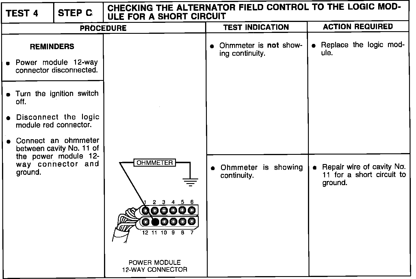 Test 4-Step C, Alternator Field Control To The Logic Module: