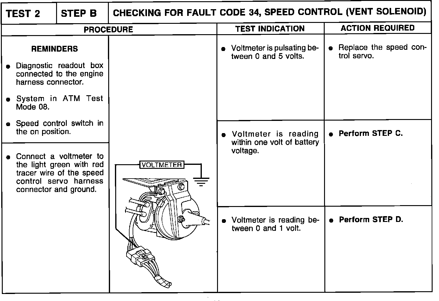 Test 2-Step B, Fault Code 34 - Speed Control Vent Solenoid: