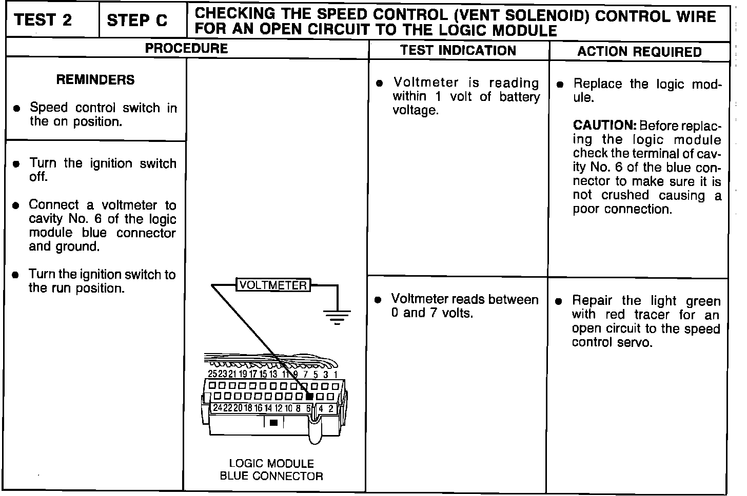 Test 2-Step C, S/C Vent Solenoid Control Wire: