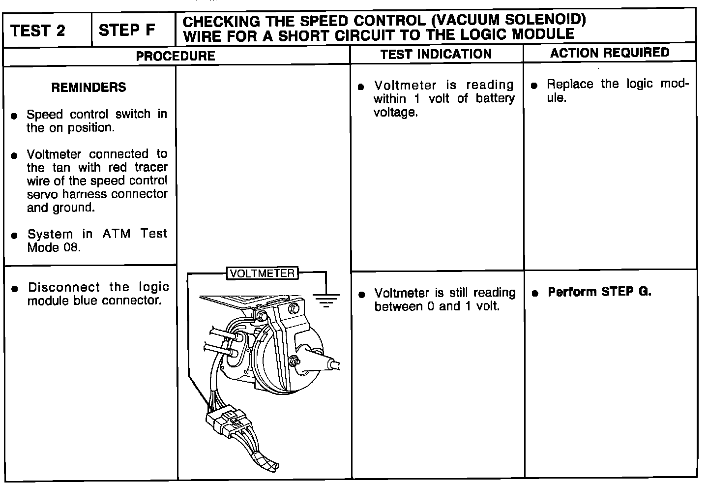 Test 2-Step F, S/C Vacuum Solenoid Wire To The Logic Module: