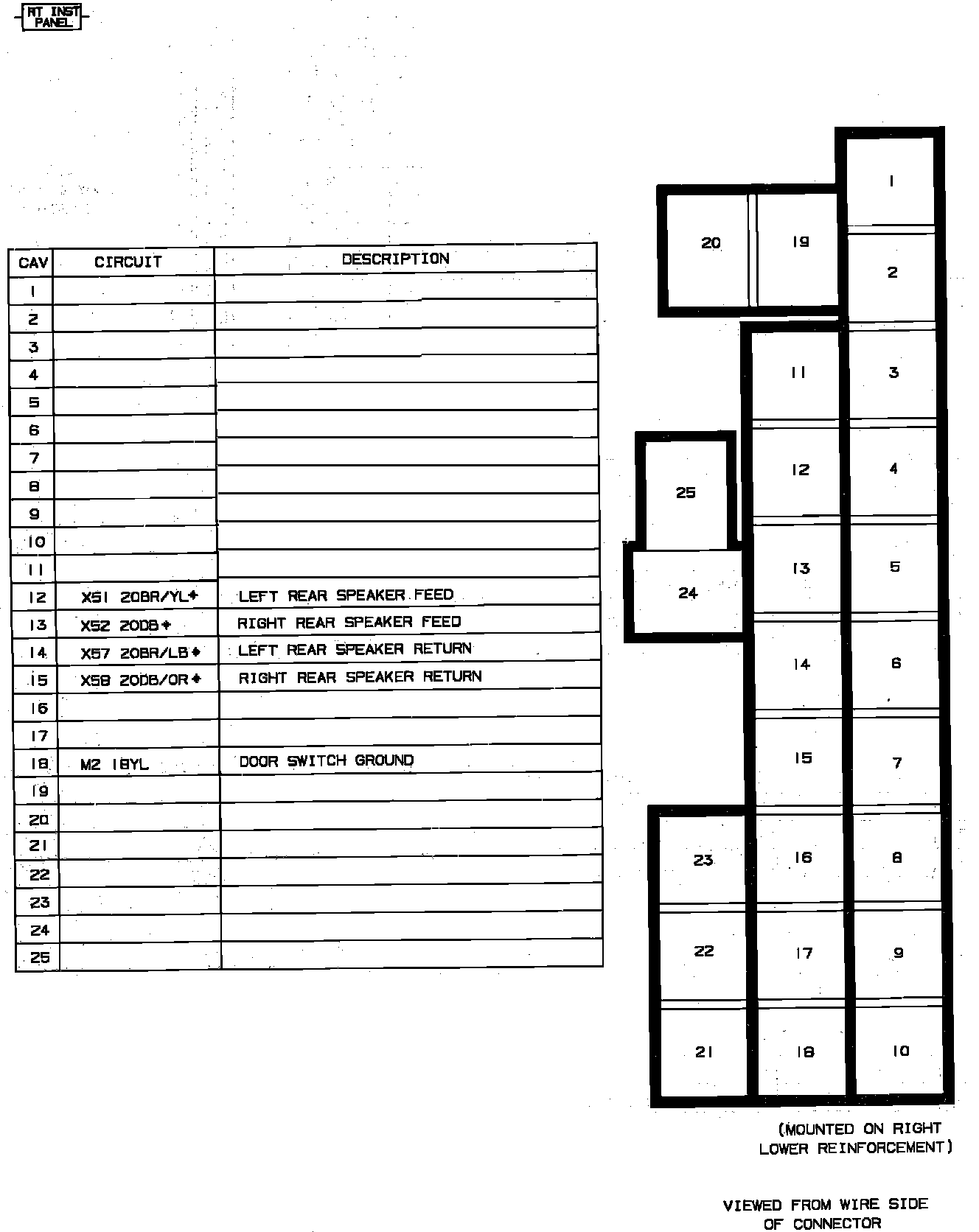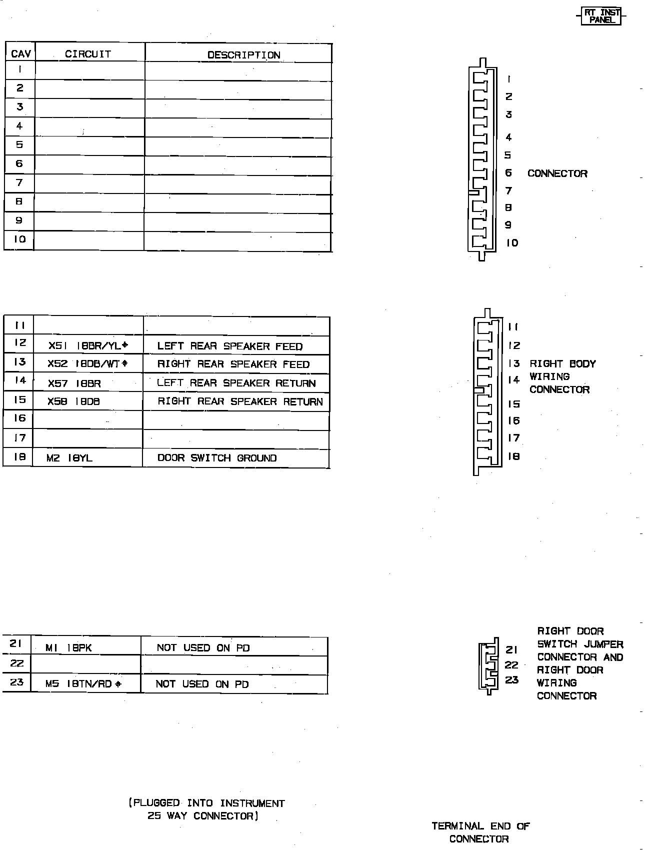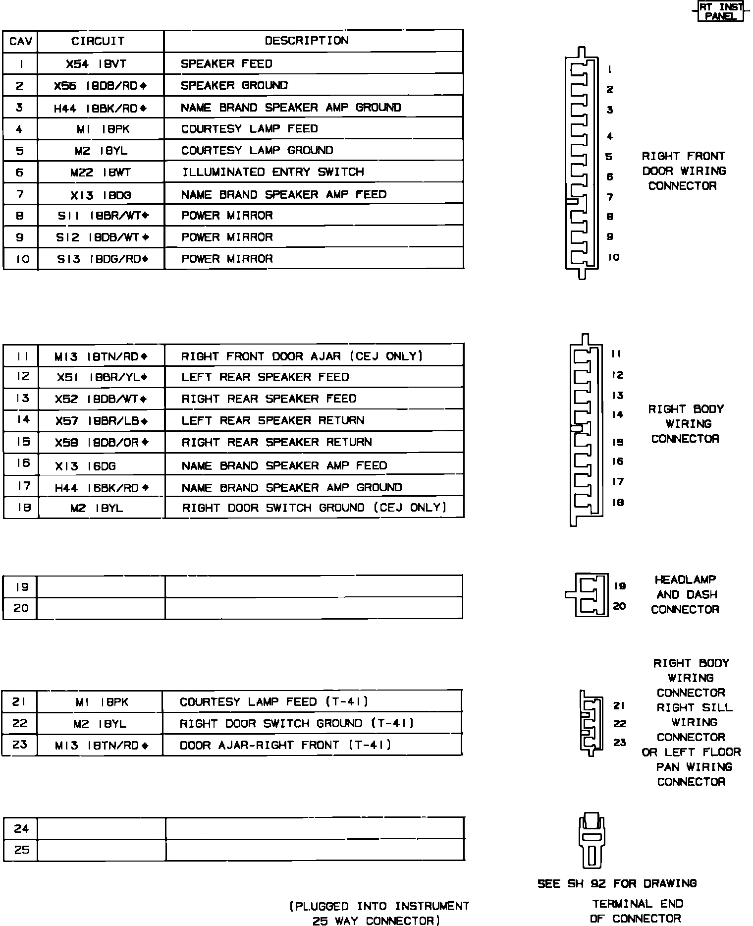 Body To Instrument Panel Connectors. Right Side: