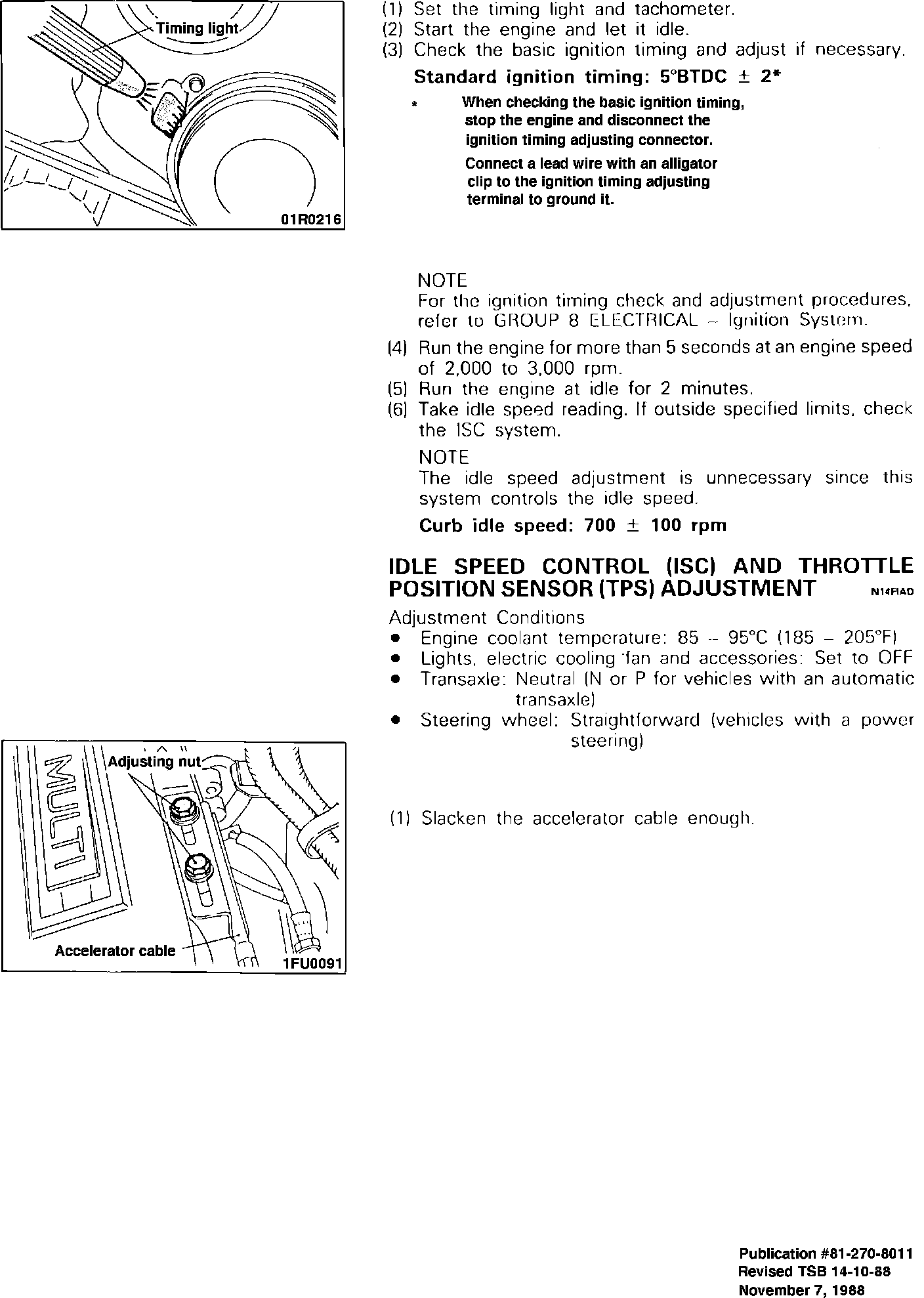 This bulletin is issued to revise the 1988 Colt, Colt Vista, and 1987 Colt Vista Service Manuals. Use the chart provided below and staple, tape, or glue the revised pages into the appropriate manual.