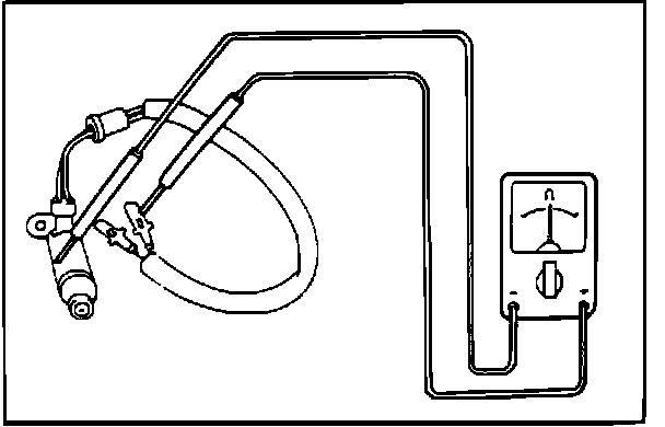 4. Using a circuit tester, check that there is no continuity between the solenoid valve body and the terminals.