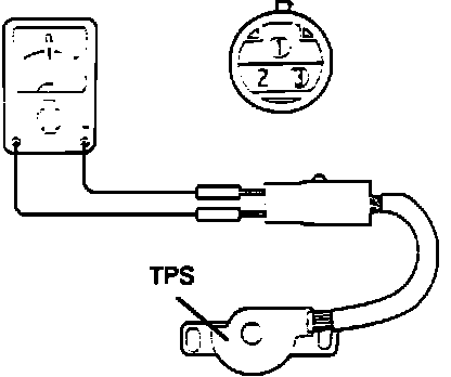 1. Measure resistance between terminals 1 and 3 of the throttle position sensor.