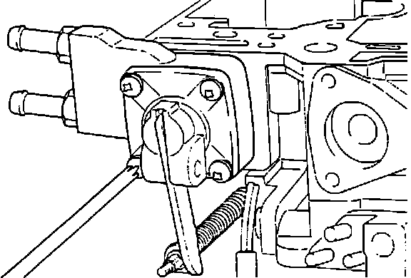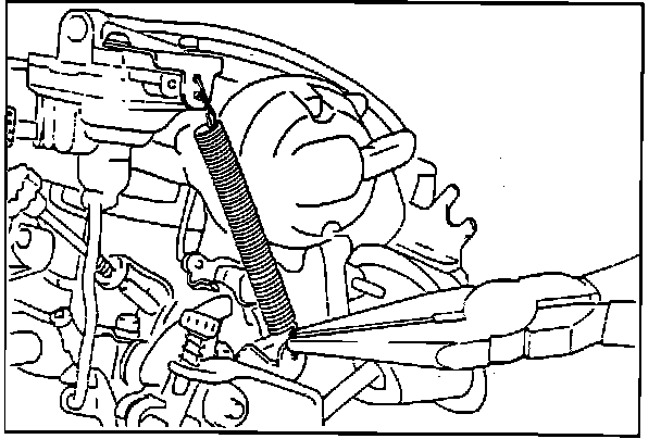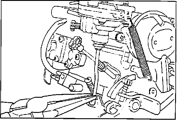 1. Remove the throttle return spring from the throttle lever. Unscrewing the two screws remove the throttle return spring bracket.