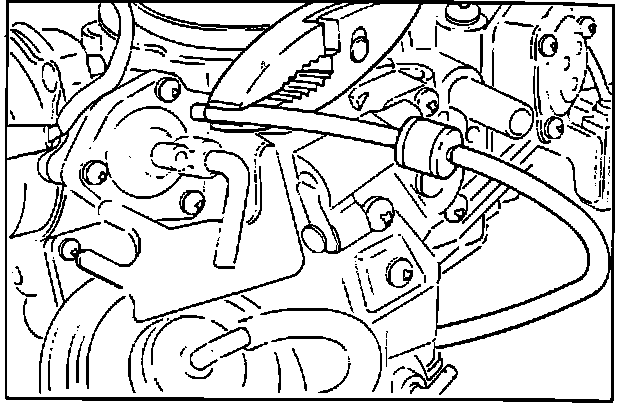 4. Pull the hose, with the delay valve, off the nipple of the choke breaker.