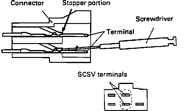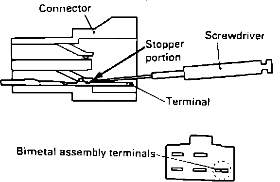 17. Using a screwdriver lift up the stopper portion and remove the terminal from the back of the connector.