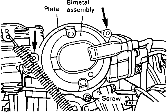 37. Remove the two screws attaching the diaphragm bracket to throttle body and remove the secondary throttle diaphragm.