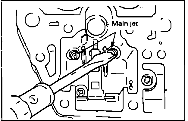 29. Remove the main jets, use a screwdriver that is an exact fit and work carefully to prevent damage to the enrichment housing on the float chamber cover.