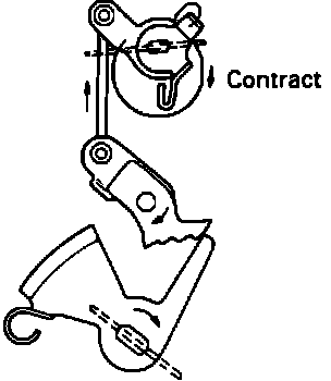 2. The choke opener forces the fast idle cam to turn counterclockwise so that the lever will rest on the lowest detent of the cam, closing the throttle valve and decreasing engine speed.