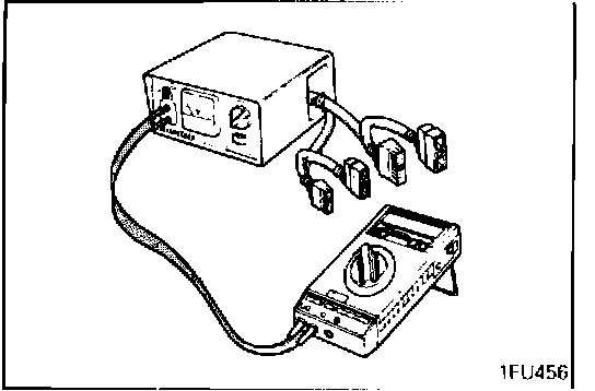 (2) Observing following caution items, insert a paper clip to the connector (3-pin) of the harness for tachometer, and connect an rpm gauge.