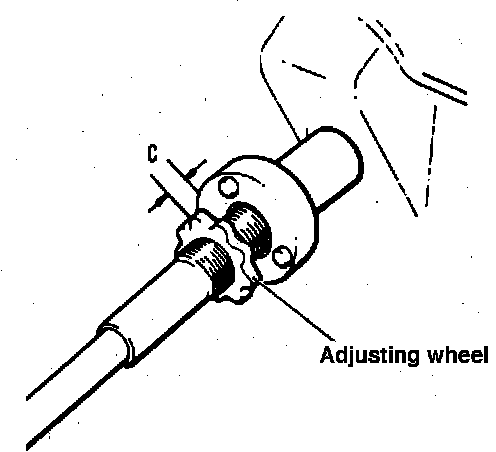 a. Pull outer cable away from cable retainer at toe board and turn adjusting wheel until clearance (C), is 0.12-0.16 inch.