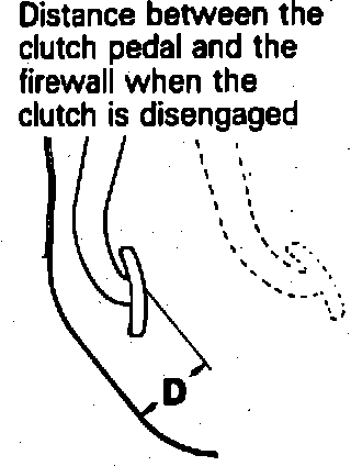 3. After adjusting pedal height and freeplay, measure height of clutch pedal from floorboard at clutch release point (D)