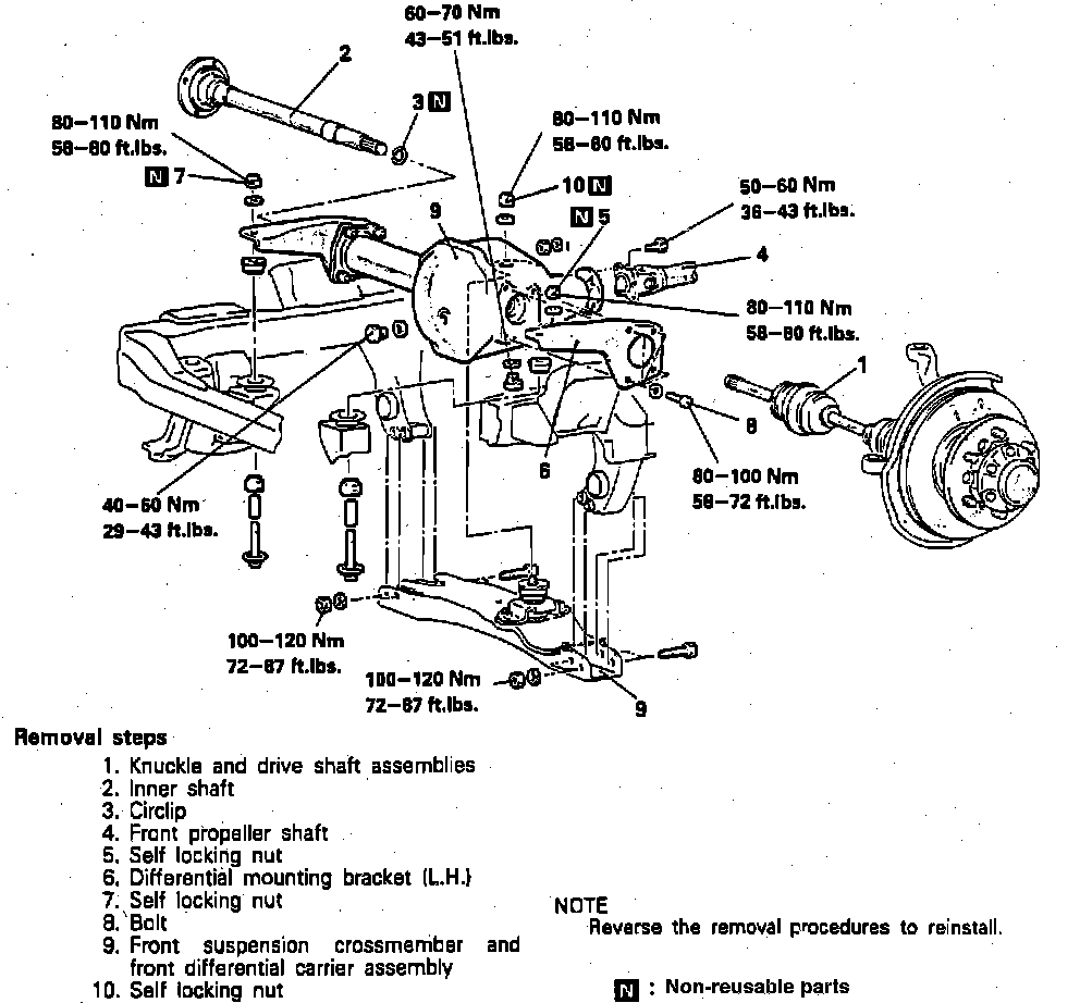 8. Disconnect front suspension crossmember then remove differential carrier and suspension crossmember assembly.