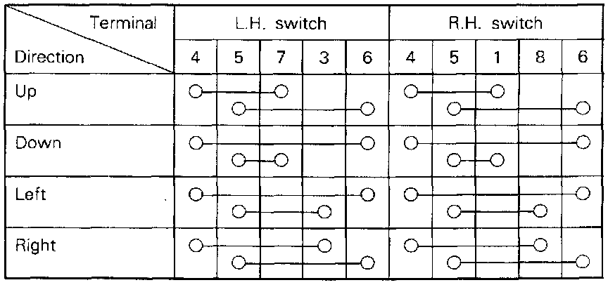Operate the switch and check the continuity between the terminals as indicated by the chart below.