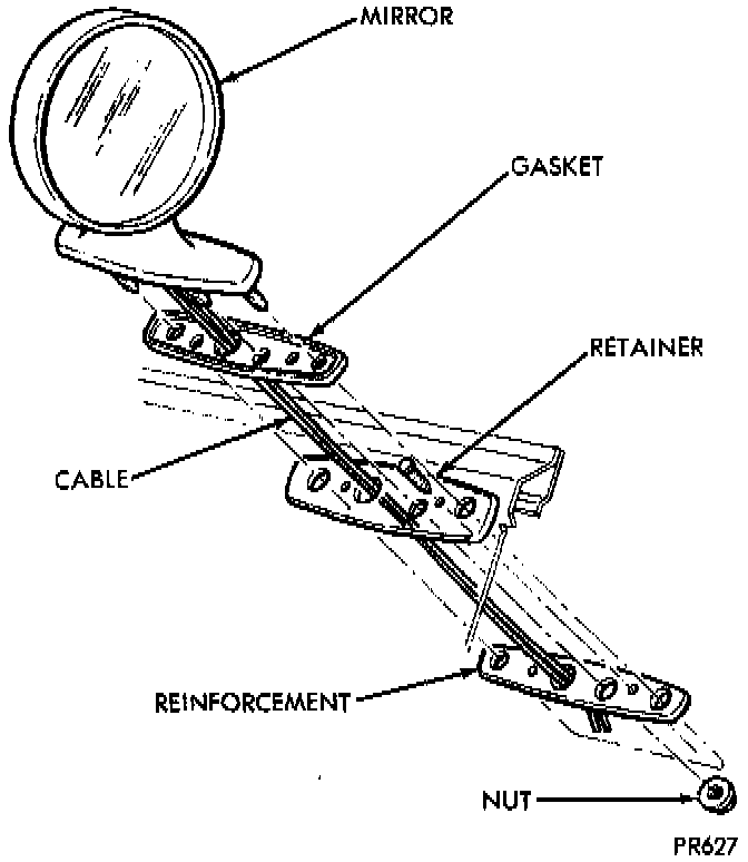 5. Remove fasteners securing mirror and remove mirrors and cable assembly from vehicle.