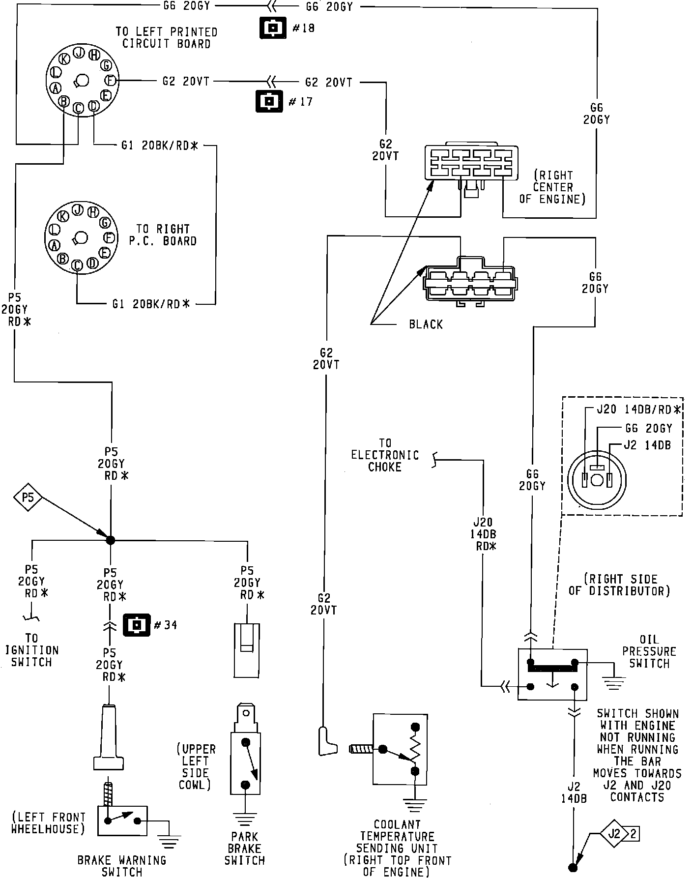 Brake Switch, Oil Pressure Switch & Temperature Warning System Wiring Circuit: